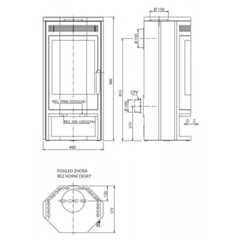 ABX Baltik 4650-4-II krbové kachle na drevo, šedý plechKrbové kachle na drevo.