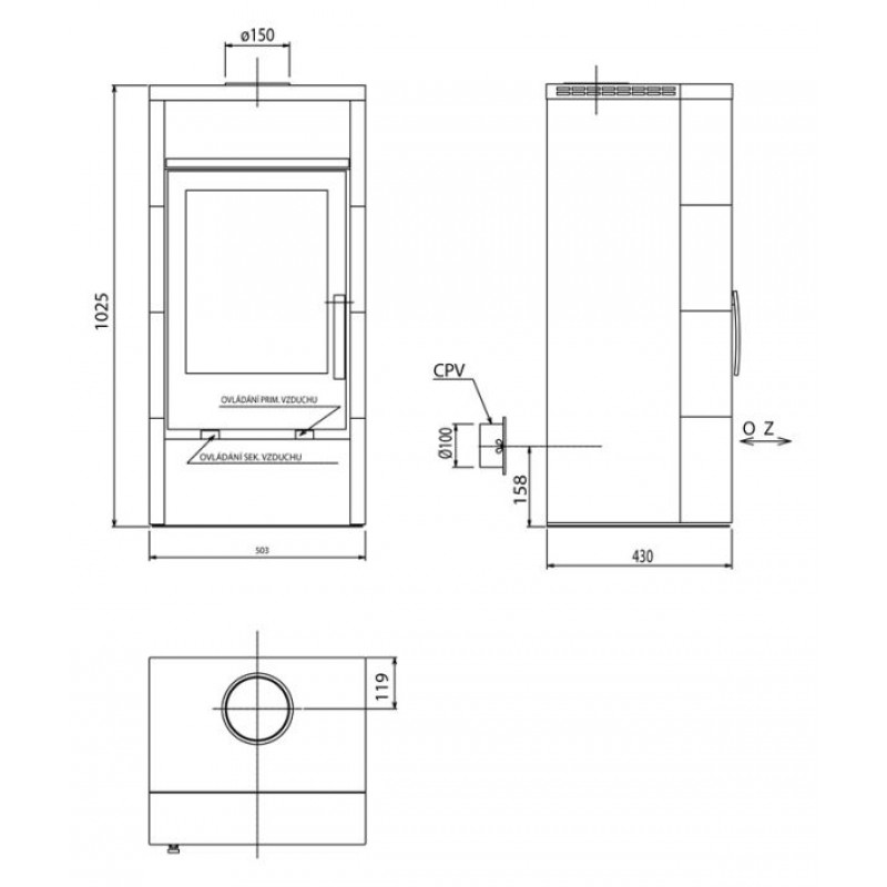 Vzdialenosť osi horného dymovodu (mm): 119