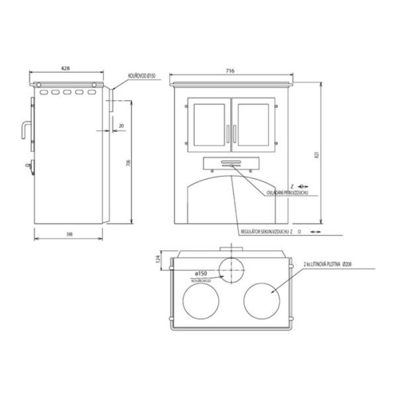 ABX Kuchynský sporák na drevo s lit platničkami bez rúry 3020 L, čierny plechKachle sú určené do chalúp a chát k vareniu a vykurovanie priestorov. Spĺňajú európske normy. Možnosť využitia horného a zadného vývodu pre dymovod.