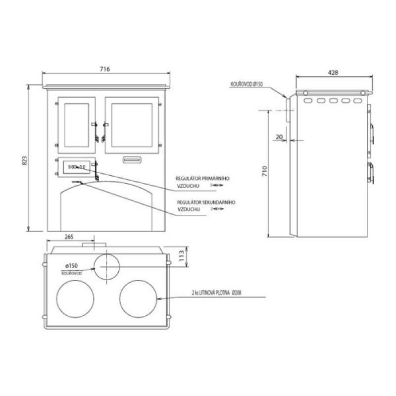ABX Kuchynský sporák na drevo s lit platničkami s rúrou 3021 L, sivý plechKachle sú určené do chalúp a chát k vareniu (s jednou výkonom silnejšie a raz výkonom slabšie platničkou), pečenie a vykurovanie priestorov. Spĺňajú európske normy. Možnosť využitia horného a zadného vývodu pre dymovod.