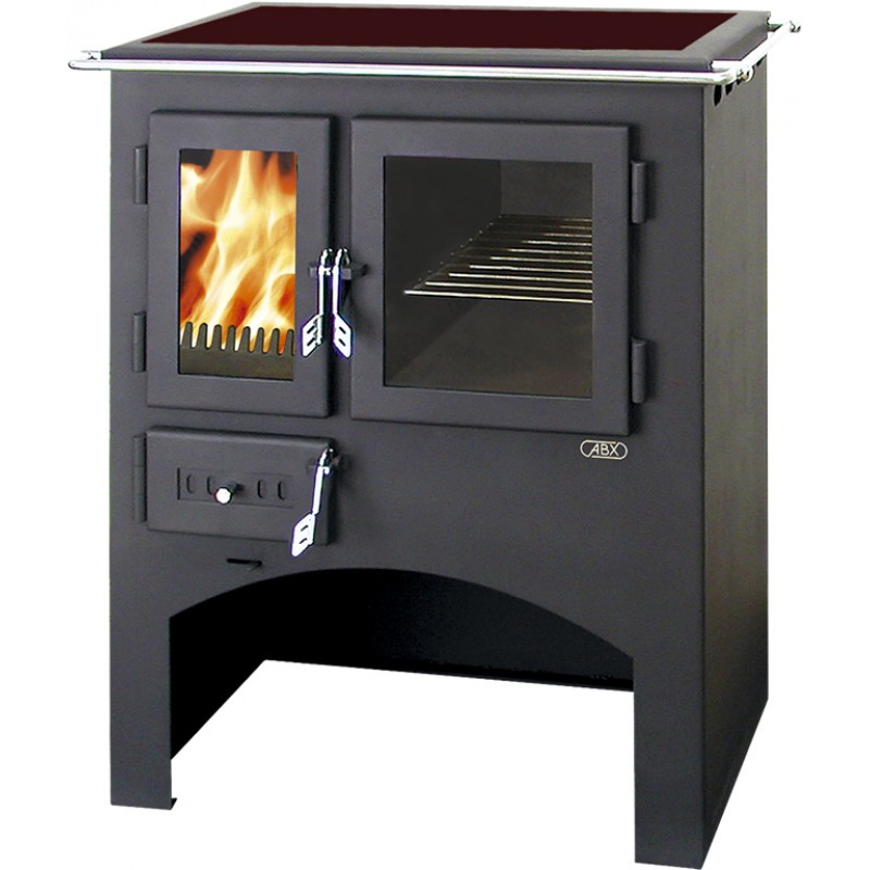 ABX Kuchynský sporák na drevo sa sklokeram. doskou s rúrou 3021 C, čierny plech