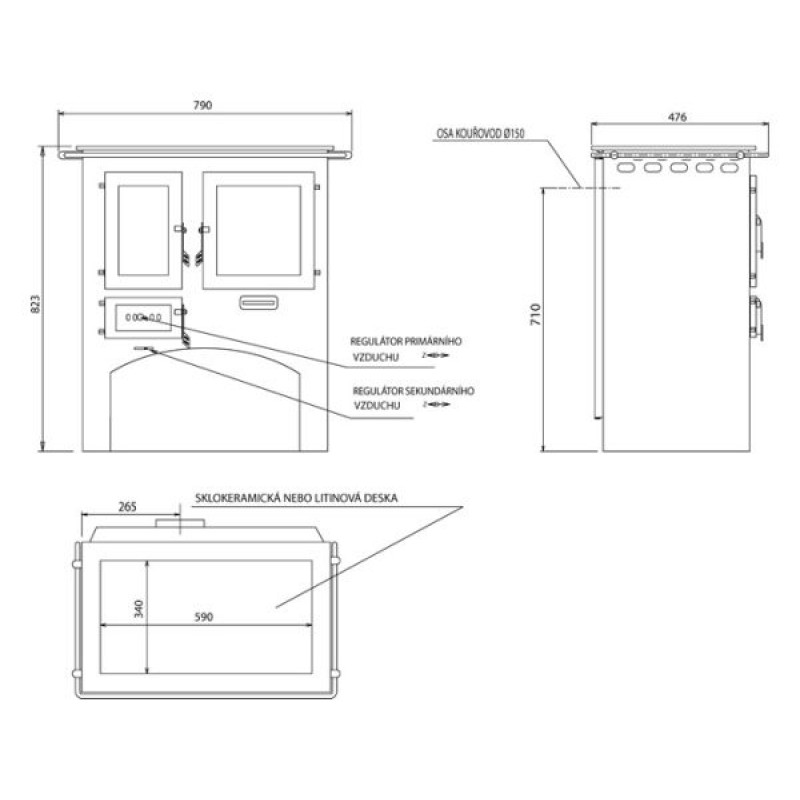 ABX Kuchynský sporák na drevo sa sklokeram. doskou s rúrou 3021 C, čierny plechKachle sú určené do chalúp a chát k vareniu a vykurovanie priestorov. Spĺňajú európske normy. Možnosť využitia iba zadného vývodu pre dymovod.