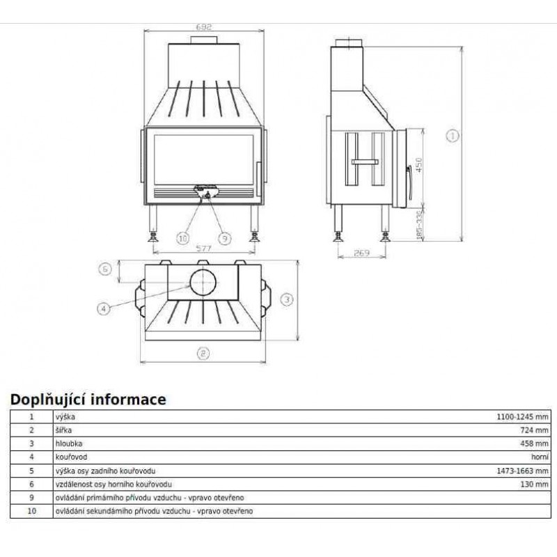Výška x hĺbka x šírka (mm): 1100-1245 x 724 x 458