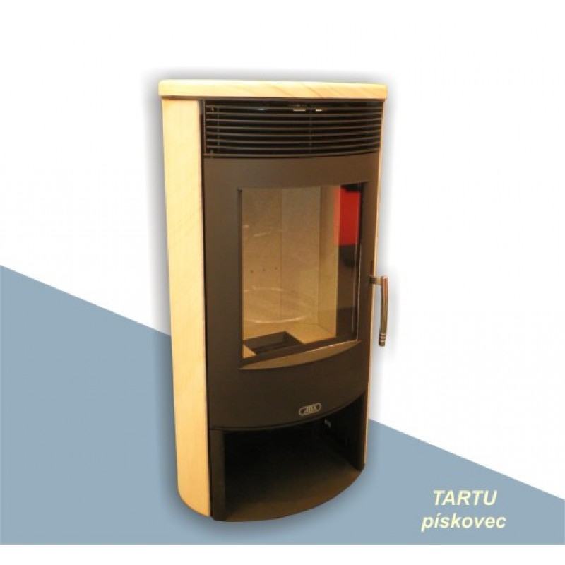 ABX Tartu 5, krbové kachle na drevo, čierny plech + pieskovec, vr. hornej doskyKrbové kachle ABX Tartu 5. Jedná sa o dvojplášťová oceľová pec, ohnisko je vyložené vermeculit, rošt je liatinový. Sklo je rovné. Kachle je možné napojiť na prívod vzduchu z exteriéru.