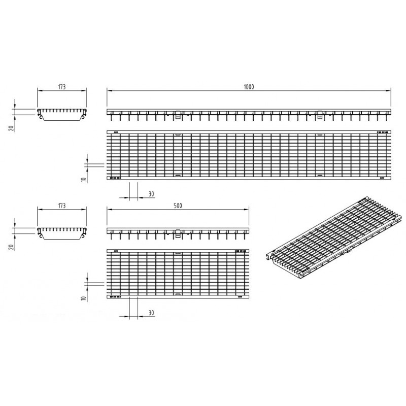 ACO Drainlock V/X150 - C250, mriežkový rošt Q+ 0,5 m, pozinkovaná oceľ 133606