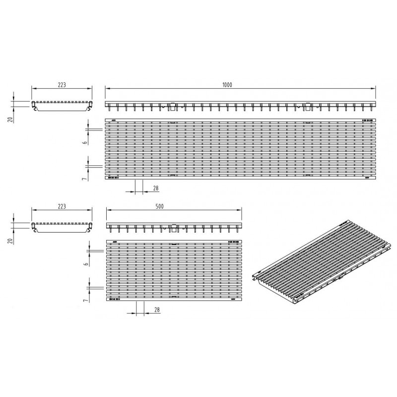 ACO Drainlock V/X200 - B125, rošt s pozdĺžnymi prútmi 0,5 m, nerez 133636