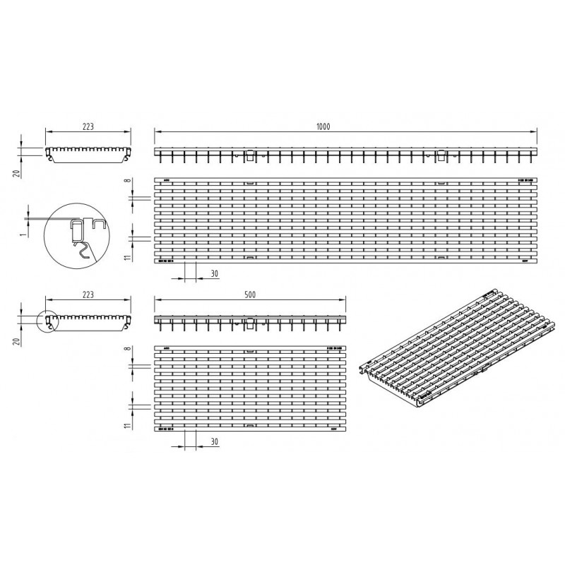 ACO Drainlock V/X200 - B125, rošt s pozdĺžnymi U-profily 0,5 m, pozink. oceľ- Záťažová trieda B 125 kN