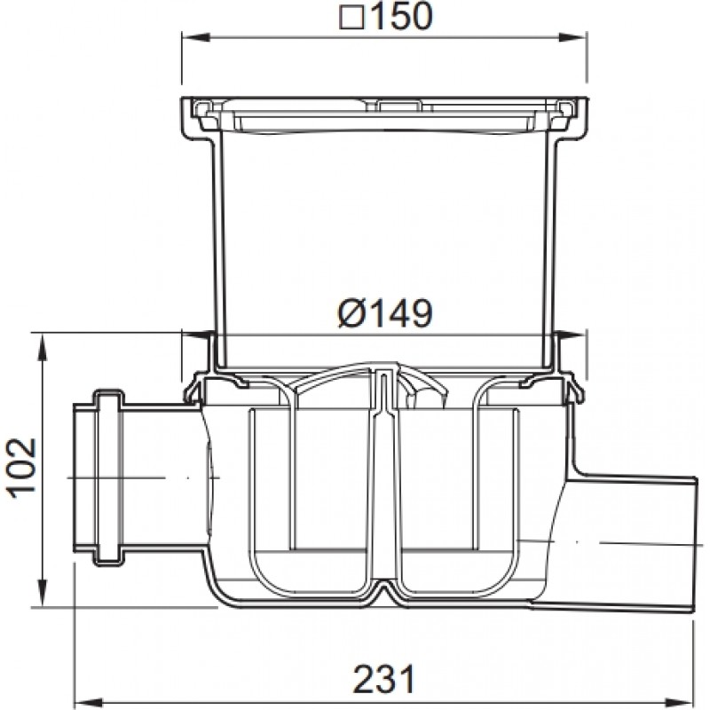 ACO EasyFlow Podlahová vpusť 150 x 150mm, sklon odtoku 1,5°, bočný prítokPlastová podlahová vpusť DN 50