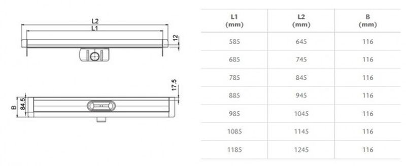 ACO ShowerDrain C odtokový žľab 585 LV, nízky sifón, stenová príruba