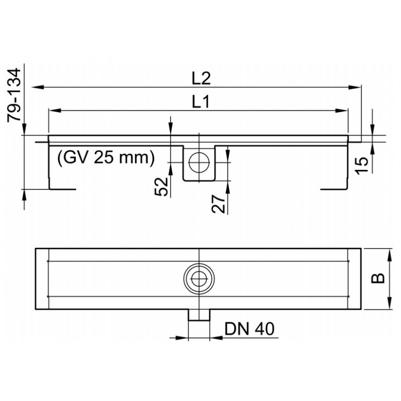 ACO ShowerDrain E žľab 1000 mm, bez roštu, bočný odtok nízky 0153.76.47Dĺžka: 1000 mm