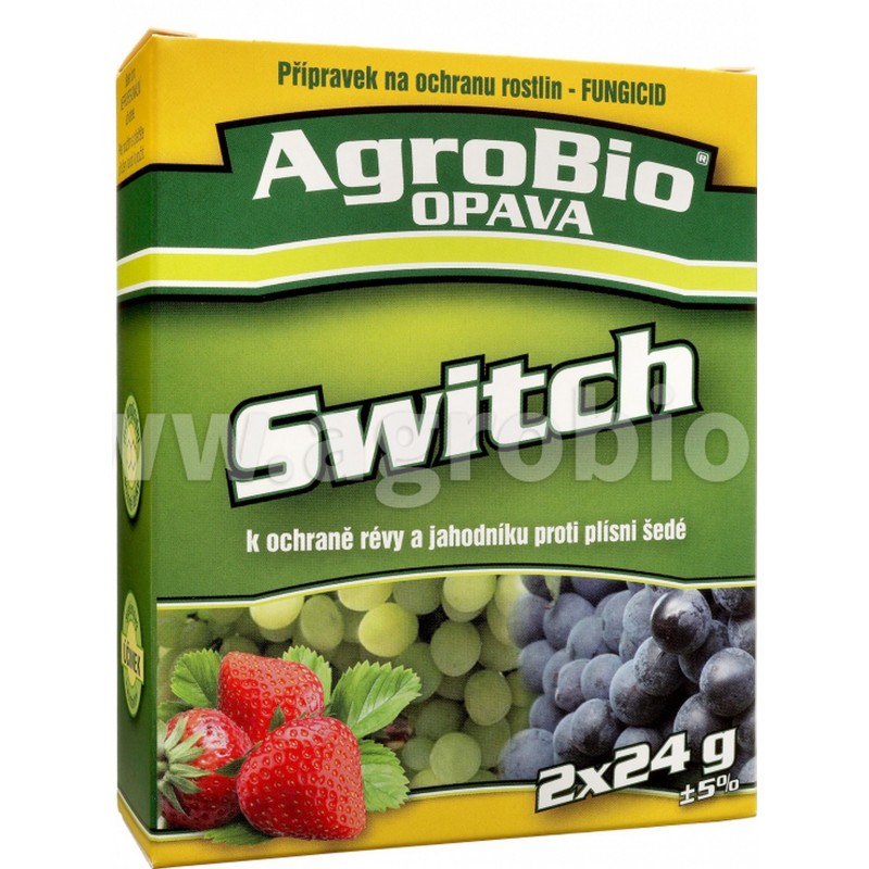 SWITCH je kombinovaný fungicíd so systémovým a kontaktným účinkom obsahujúci dve účinné látky: cyprodinil a fludioxonil. Cyprodinil inhibuje biosyntézu aminokyselín. Do rastliny preniká veľmi rýchlo prostredníctvom listov už v priebehu 2 hodín po ošetrení. Po uplynutí tejto doby nemôže už byť účinná látka zmytí dažďom. V rastline sa účinná látka pohybuje akropetálne smerom k novým prírastkom a translaminárne. Fludioxonil zo skupiny fenylpyrrolů je účinná látka odvodená z pyrrolnitrinu, prírodné antimykotické látky produkované pôdnymi baktériami rodu Pseudomonas spp. Fludioxonil je širokospektrálny fungicíd s reziduálnym účinkom.
