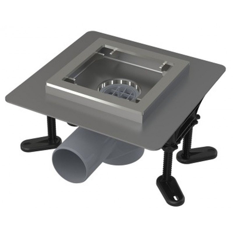 ALCAPLAST Podlahová vpusť nerezová 130 × 130 mm bočná APV130Podlahová vpusť nerezová 130 × 130 mm bočné, bez mriežky, vodná zápachová uzávera.