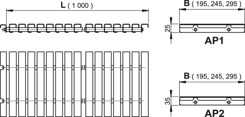 ALCAPLAST prelivový rošt bez protišmyku 35mmx195mmx1000mm AP2-195/1000