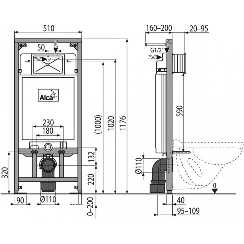 ALCAPLAST Sádromodul - predstenový inštalačný systém určený pre suchú inštaláciu (do sadrokartónu) A101 / 1200Rozmer - kartón 530 × 1195 × 145 mm