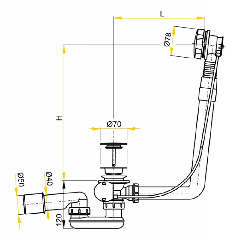 ALCAPLAST Sifón vaňový automat komplet kov (dĺžka 100 cm) A550KM100* Ovládacie koliesko - kov s chrómovou povrchovou úpravou