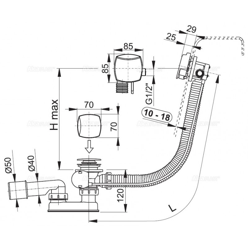 ALCAPLAST Sifón vaňový automat s napúšťaním prepadom pre hrubostenne vane kov A565KM3 100- 100 cm