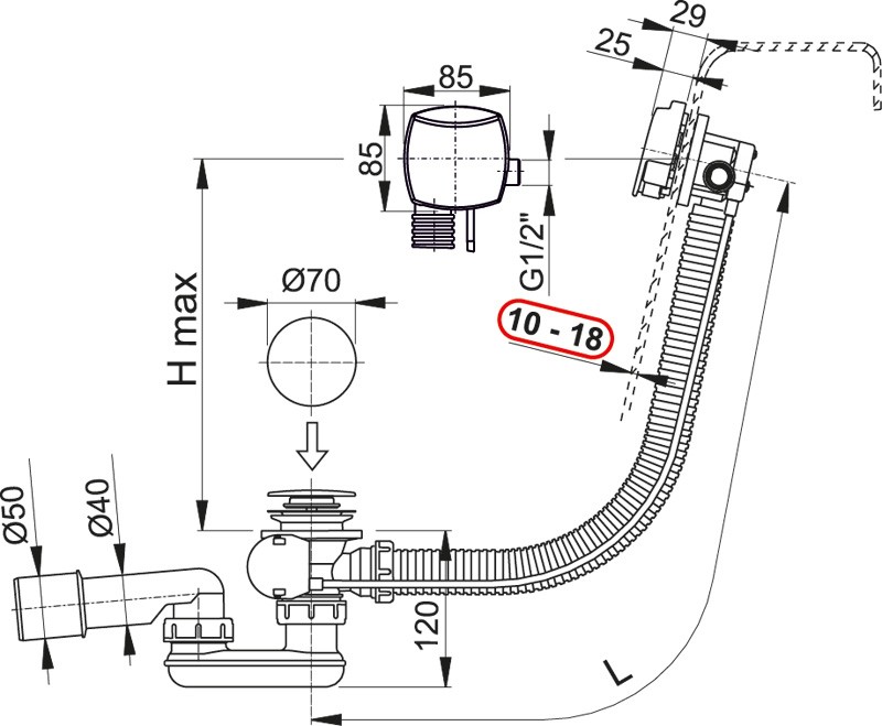 - Nízky profil sifónu (stavebná výška 120 mm)