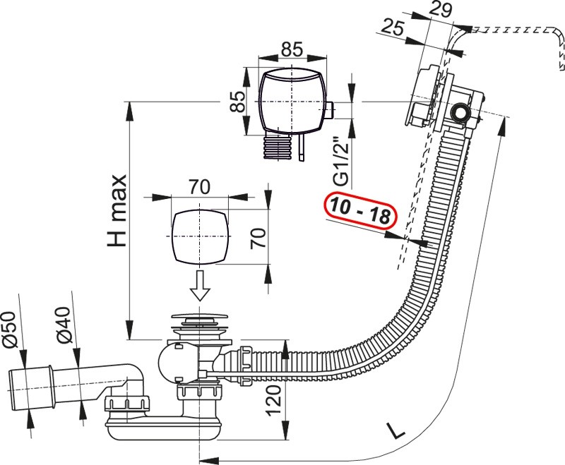 - Nízky profil sifónu (stavebná výška 120 mm)