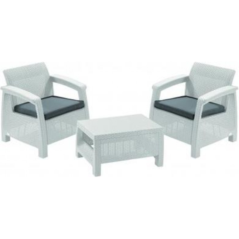 ALLIBERT CORFU WEEKEND záhradný set, biela/sivá 17197786Súprava Corfu WEEKEND zaistí pohodlné sedenie ako vonku, tak v interiéri. Je vyrobená z umelého plochého ratanu. Vďaka svojmu modernému, peknému dizajnu patrí táto súprava k najobľúbenejším. Skladá sa z dvoch kresiel a stolíka, takže je vhodná aj do malých priestorov či na balkóny. Jednoduchá montáž i údržba.