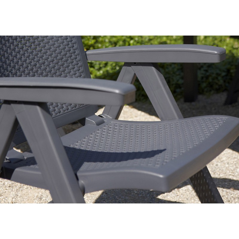 Montreal plastové polohovacie kreslo na relax na Vašej záhrade či terase. Kreslo ponúka 4 polohy na nastavenie operadla pomocou posunutia podrúčiek. Kreslo je odolné nepriazni počasia aj UV žiareniu. Veľkým plus je aj ľahká údržba, kedy Vám stačí len mokrá handrička a kreslo je ako nové.