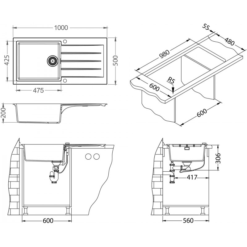 ALVEUS CADIT 50 kuchynský drez granitový, 1000 x 500 mm, béžová 1140597