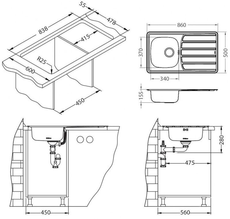 Súčasťou drezu je kompletné príslušenstvo k montáži (výpust, sifón, príchytky atď.). Nie je potrebné nič dokupovať.
