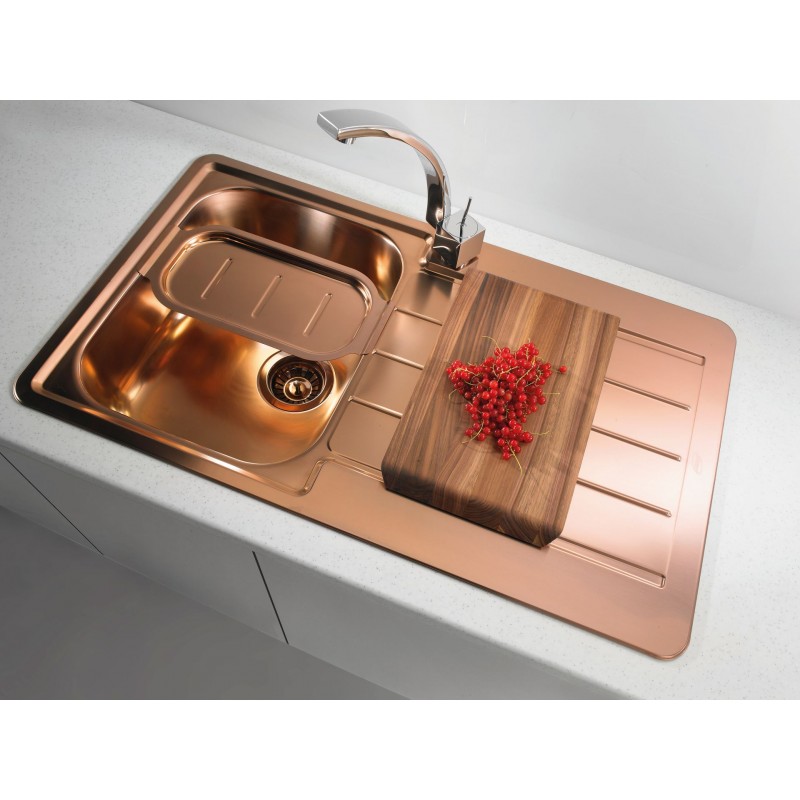 Radu drezov značky Alveus boli rozšírené o skupinu kuchynských drezov radu Monarch, ktorá je dostupná v troch rozdielnych nerezových prevedeniach. Vo vašej kuchyni sa môžu teraz žiarivo vynímať zlaté, medené a antracitovej varianty. Kovový lesk drezu dodá vašej kuchyni nádych mystiky a vďaka špeciálnej technológii akumulácia je každý drez unikátny. Atraktivitu a funkčnosť drezu umocňujú doplnky ako drevená doska na krájanie alebo nerezová miska.