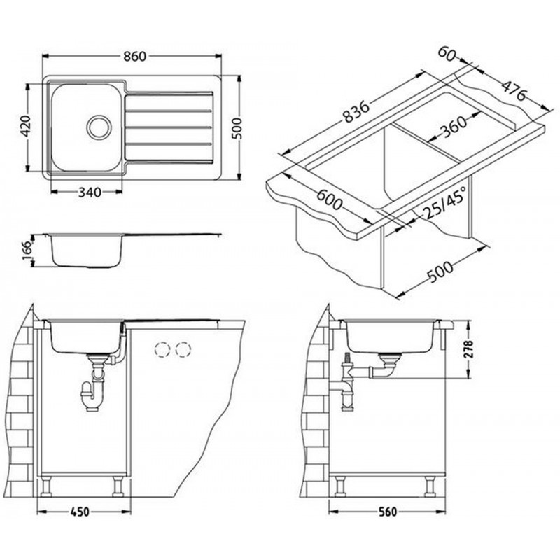 ALVEUS LINE 20 Monarch kuchynský drez, 860 x 500 mm, antracit 1078569