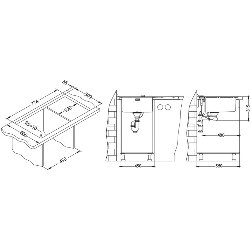 - Minimálna šírka skrinky: 450 mm