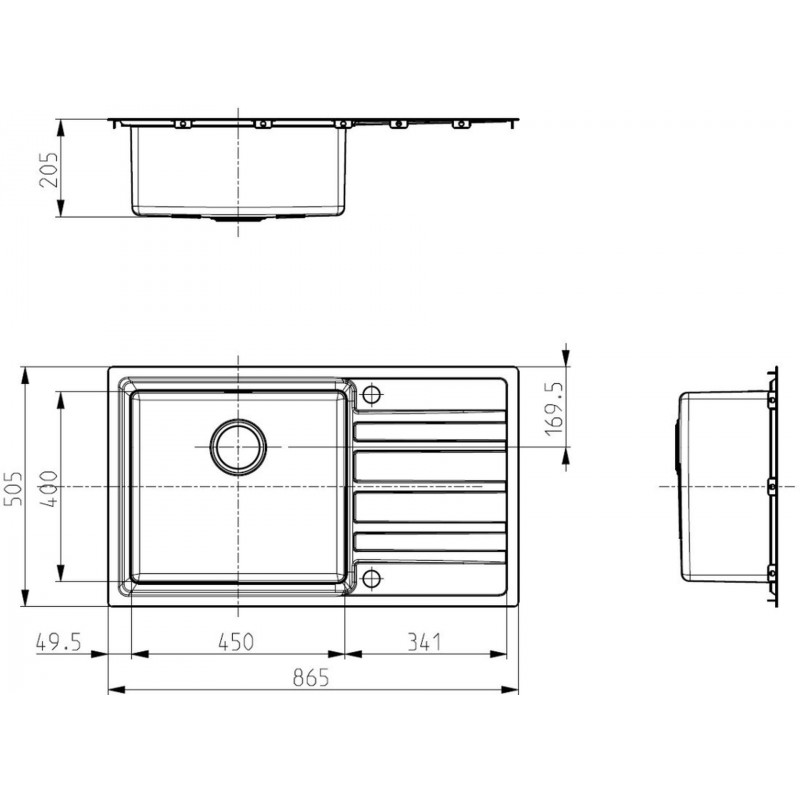 - Rozmer drezovej nádoby: 450 x 400 x 205 mm