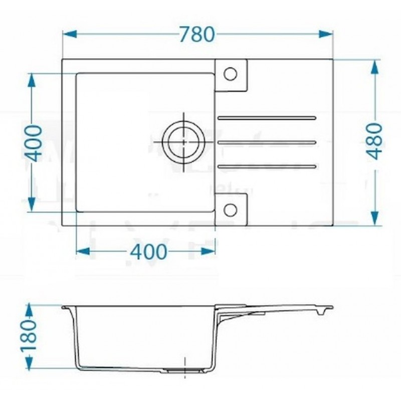 Rozmer drezu: 780 x 480 mmRozmer vaničky: 400 x 400 x 180 mm