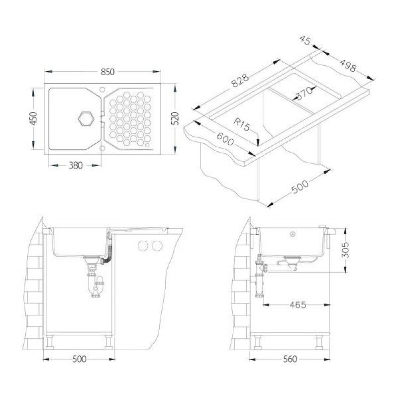 - Rozmer drezovej nádoby: 380 x 450 x 200 mm