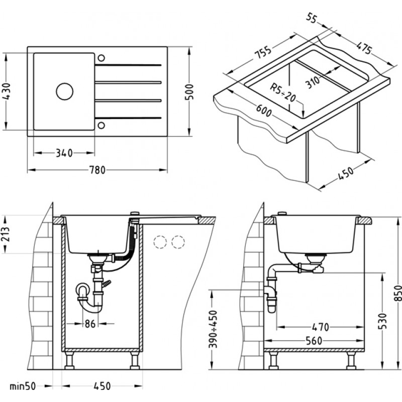 ALVEUS set drez Cubo 30 arctic + batérie AM 50 arctic + čističRozmery drezu: