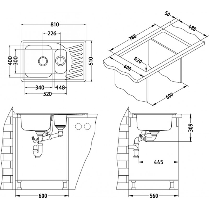 ALVEUS set drez Elegant 110 nerez + batérie Milena + doska na krájanieRozmery drezu: