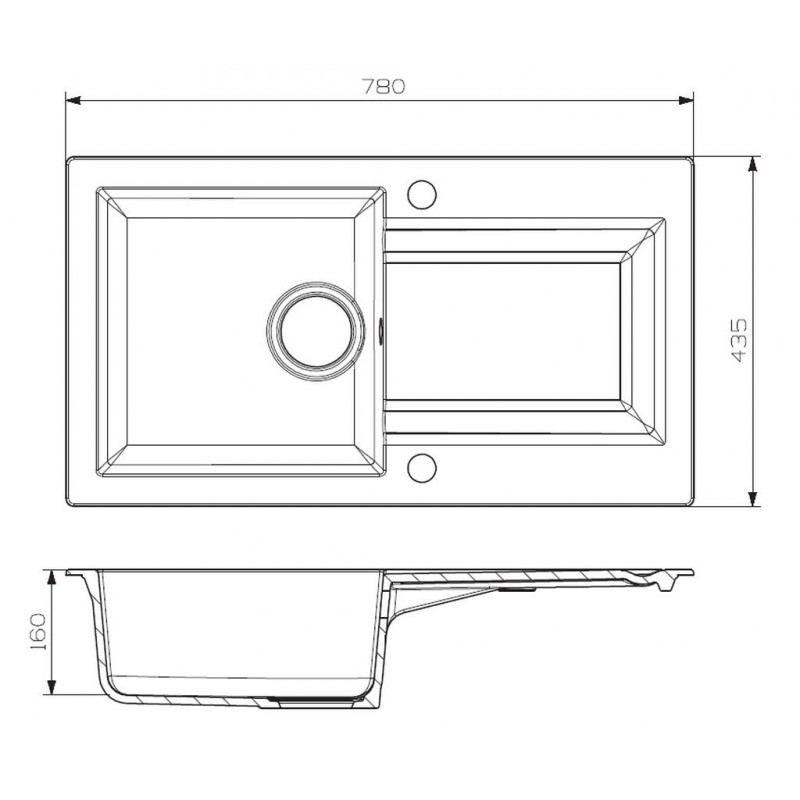 Rozmery drezu: 780 x 435 mm- Vanička: 355 x 355 x 160 mm