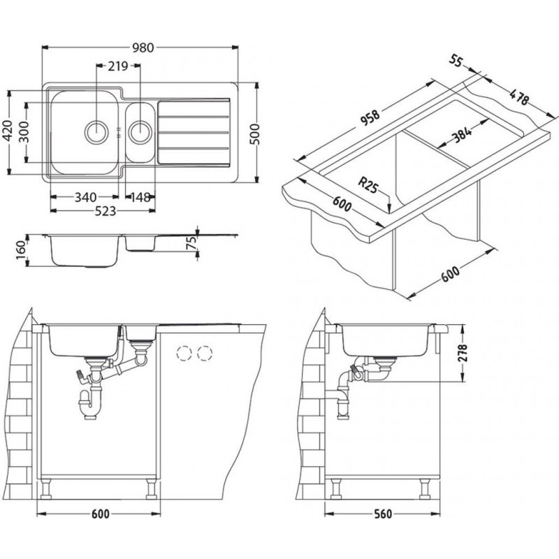 - Hrúbka nerezu (CrNi) je v rozsahu od 0,5 mm do 1 mm, v závislosti na cenovej kategórii drezu.