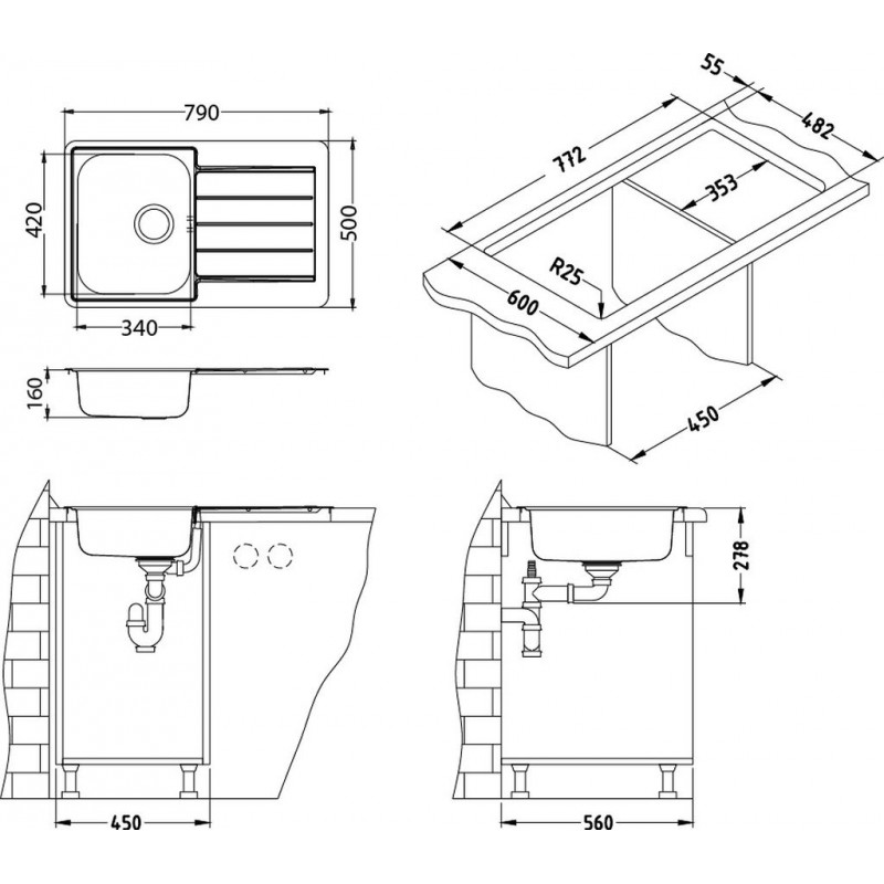 - Hrúbka nerezu (CrNi) je v rozsahu od 0,5 mm do 1 mm, v závislosti na cenovej kategórii drezu.