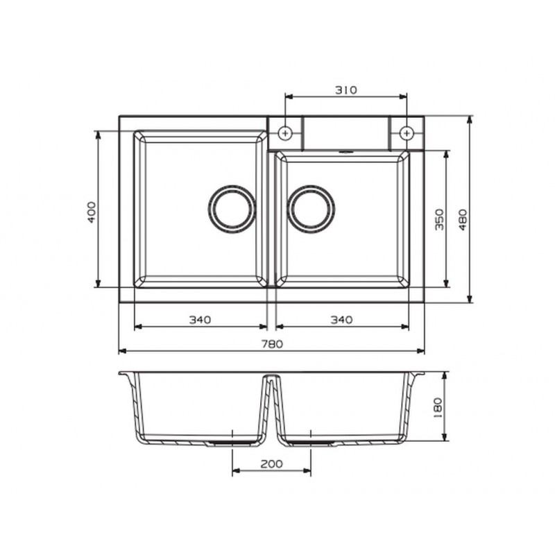 Vanička: 340 x 400 x 180 mm, 340 x 350 x 180 mm