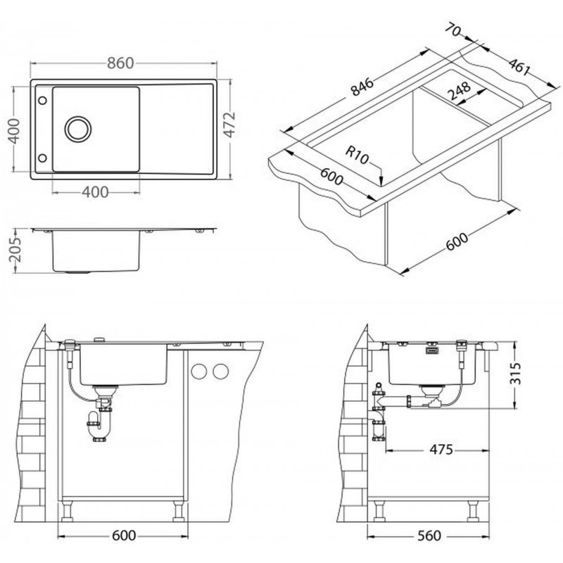 - Rozmer drezovej nádoby: 400 x 400 x 205 mm