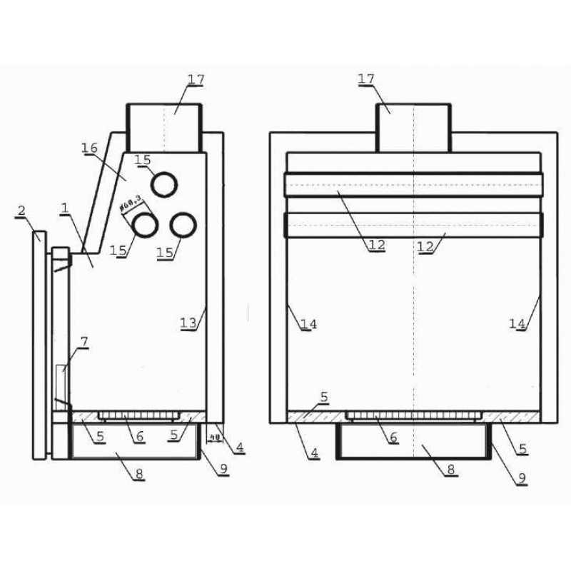 - Dno krbovej vložky je u modelov RS vyložené keramickou výstelkou. U ostatných je vyložený šamotom. Výstelka zvyšuje teplotu spaľovania a tým aj účinnosť celého výrobku