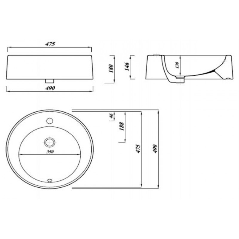 BROOK keramické umývadlo priemer 50 cm, na dosku, bielaFarba Biela