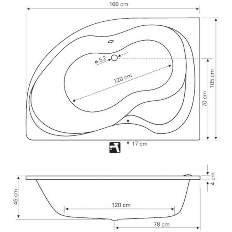 AQUALINE CIDLINA 160 vaňa, bez nožičiek, pravá, biela G3614Inštalácia Zapustenie do podlahy, Usadenie na podlahu, podmurovaním a obložením, S obkladovým panelom, Inštalácia do rohu.