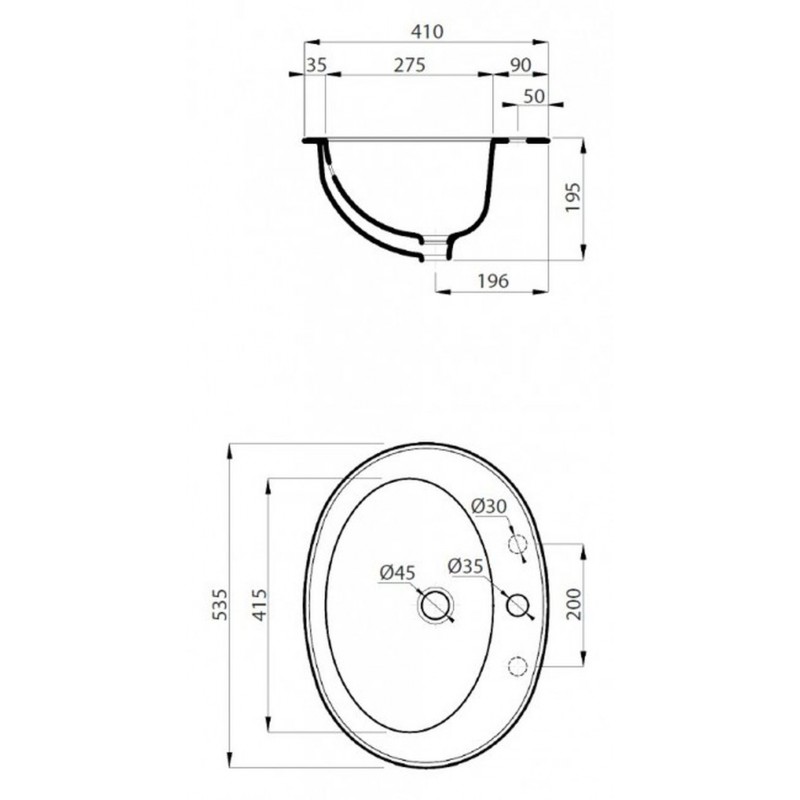 AQUALINE SARA zápustné umývadlo 54x41 cm, FS1630