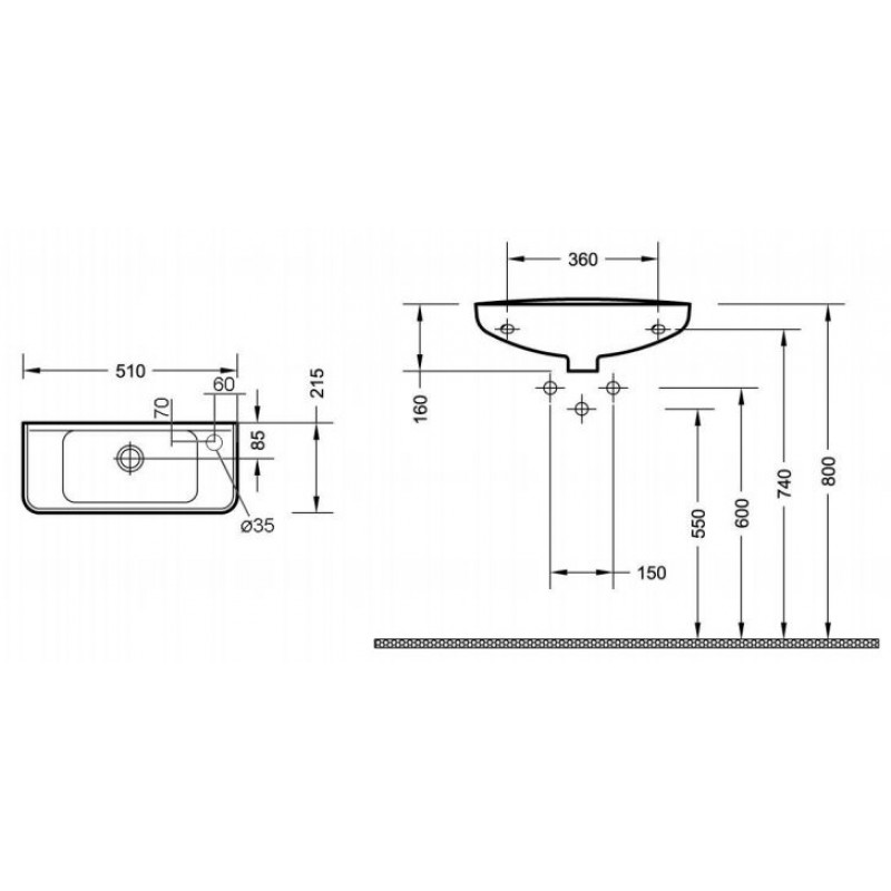 Keramické umývadlo 51x22cm séria SMALLRozmery: