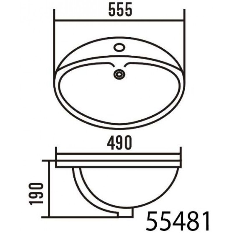 Keramické umývadlo 55x48x19 cm, zápustnéRozmery: