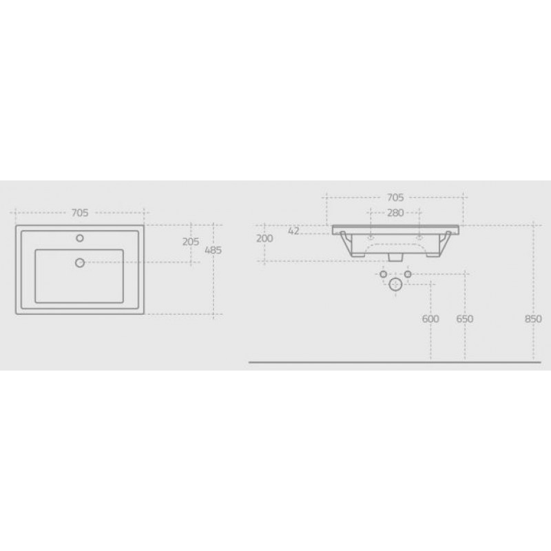 AQUALINE ZENO 70 nábytkové umývadlo 70x48,5cm, 8070