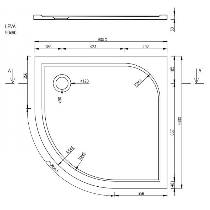 ARTTEC STONE 9090R L - sprchová vanička štvrťkruhová PAN00910- Rozmery: 90x90x3 cm