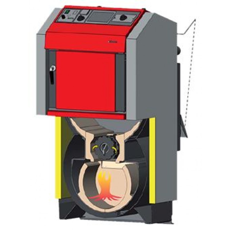 * Kúreniská s otočným liatinovým roštom s prívodom predhriateho sekundárneho vzduchu - dobré spaľovanie už od zakúrenia a rýchle dosiahnutie výkonu kotla