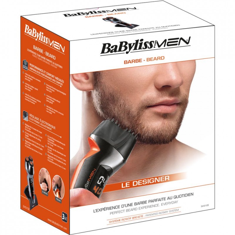 BABYLISS SH510E zastrihávač fúzov 41005308- Trojitá hlava s rotačnou čepeľou pre presný strih a zle dostupných častiach tváre