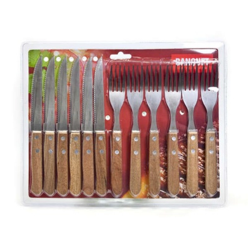 BANQUET 12-dielny steakový set Party Blister 45328351-A12D steakové SET Party, steakové príbory s drevenou rukoväťou, zubaté ostrie pre ľahké krájanie mäsa.